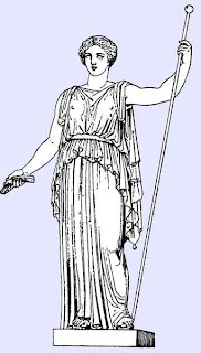 Ήρα. Αδερφή και γυναίκα του Δία. Προστάτευε το γάμο και την οικογένεια.
